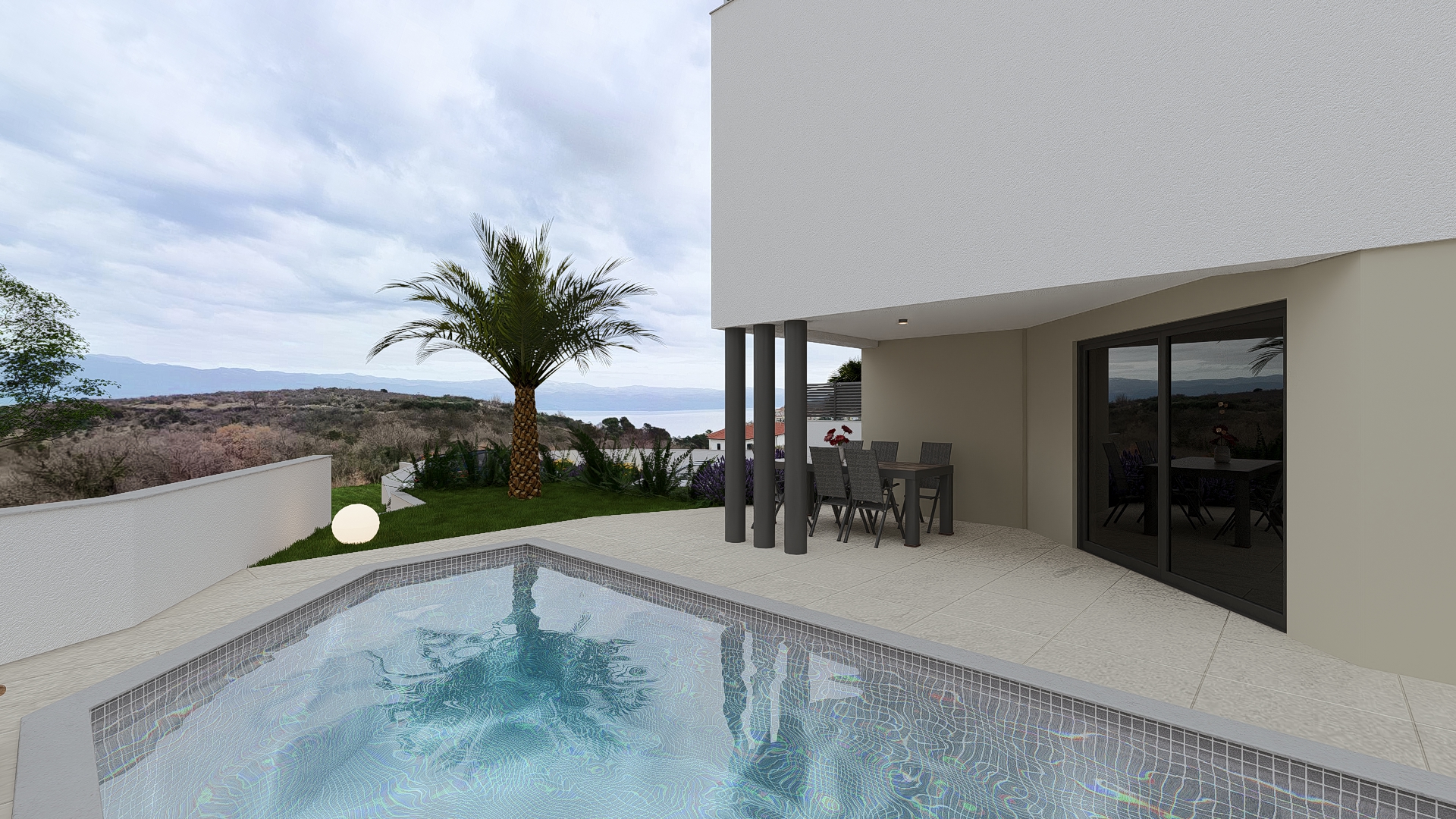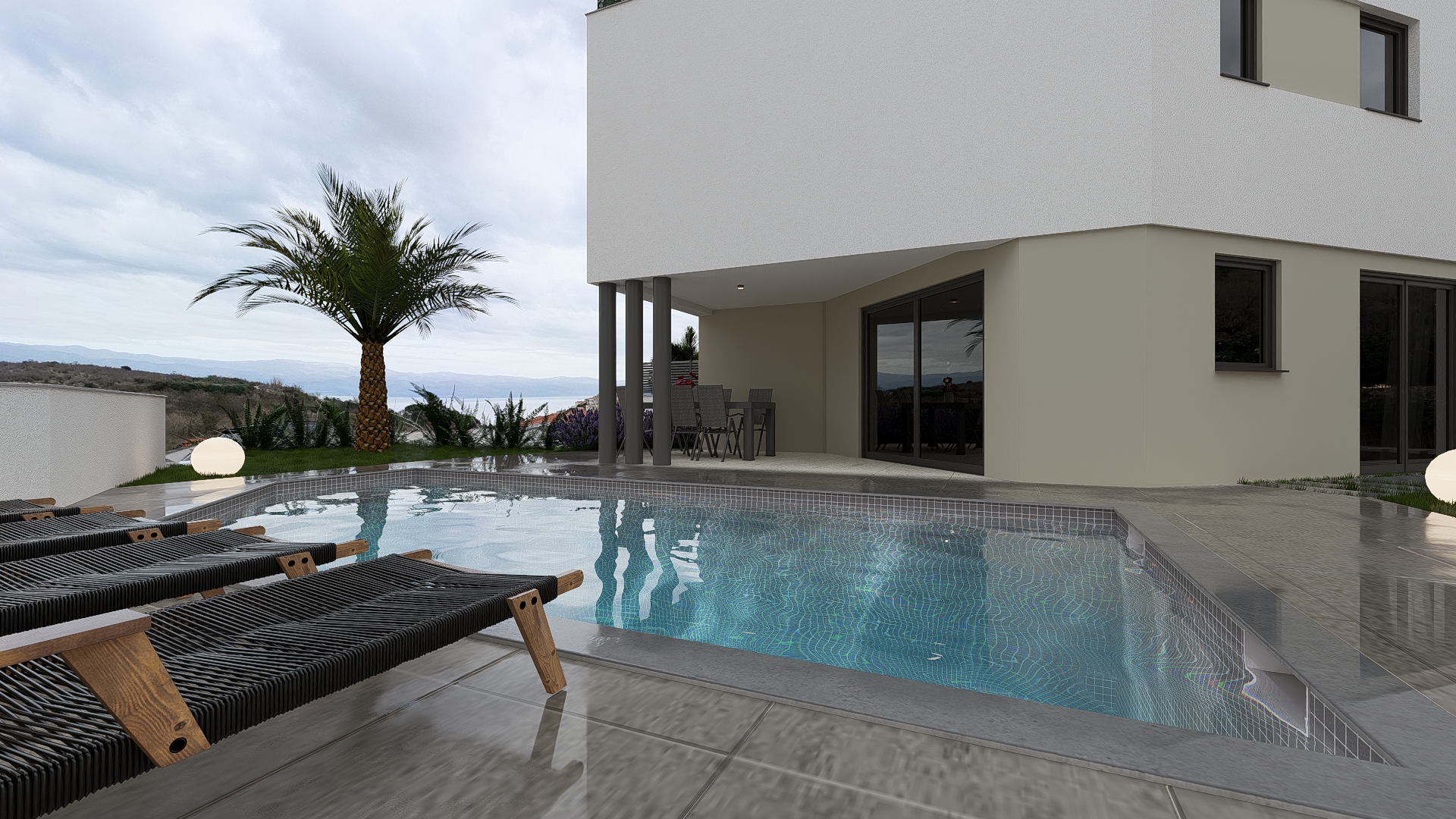 A beautifully designed apartment on the upper floor, offering an open panoramic view of the sea and the historic old town of Vrbnik.